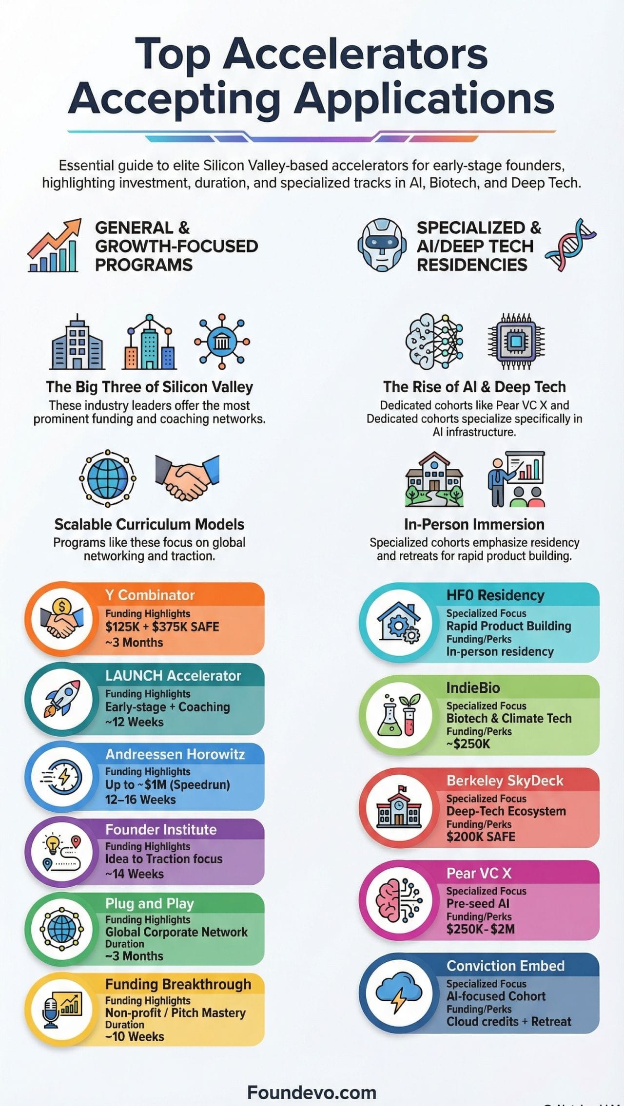 Program length and intensity differ significantly across the options available. A twelve-week sprint like Pear VC PearX is built for teams that are ready to move fast and already have a clear product thesis. A longer residency format like HF0 is designed for founders who are still in the process of finding their footing and building the initial product. Neither is better in the abstract. The right choice depends on where the team actually is versus where the program assumes they are when they arrive.