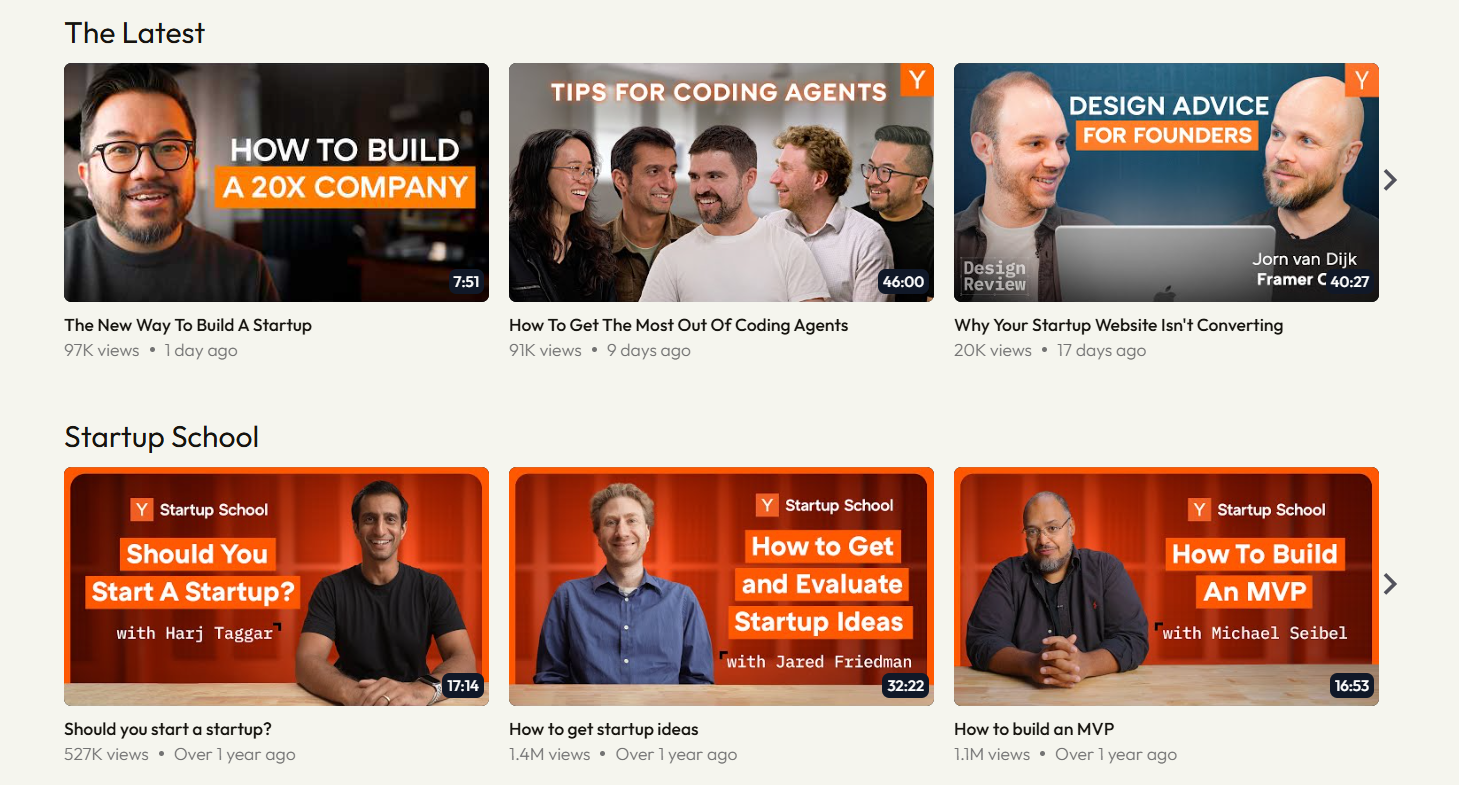 - 🎥 YC YouTube — Deep insights and lectures from top founders and investors.