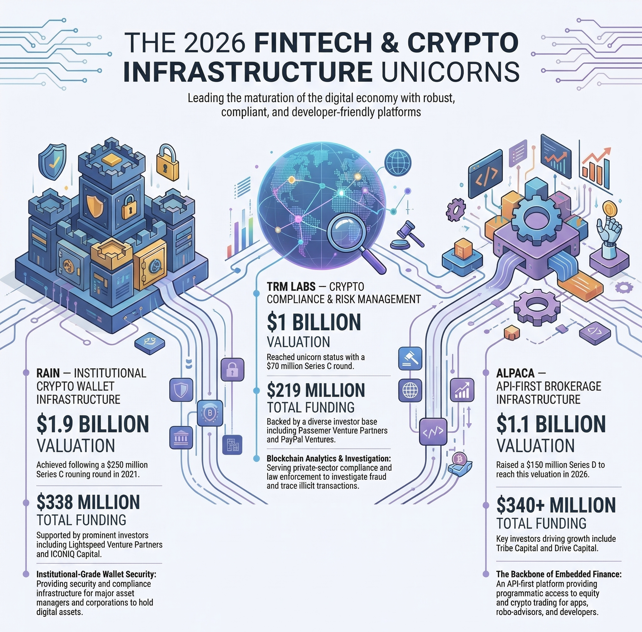 Several 2026 unicorns are building infrastructure for the crypto industry rather than speculative products. Compliance tools, banking services, and wallet infrastructure are attracting institutional venture capital. This reflects a broader maturation of the crypto industry as a regulated sector requiring the same compliance and financial infrastructure as any other part of the financial system.
