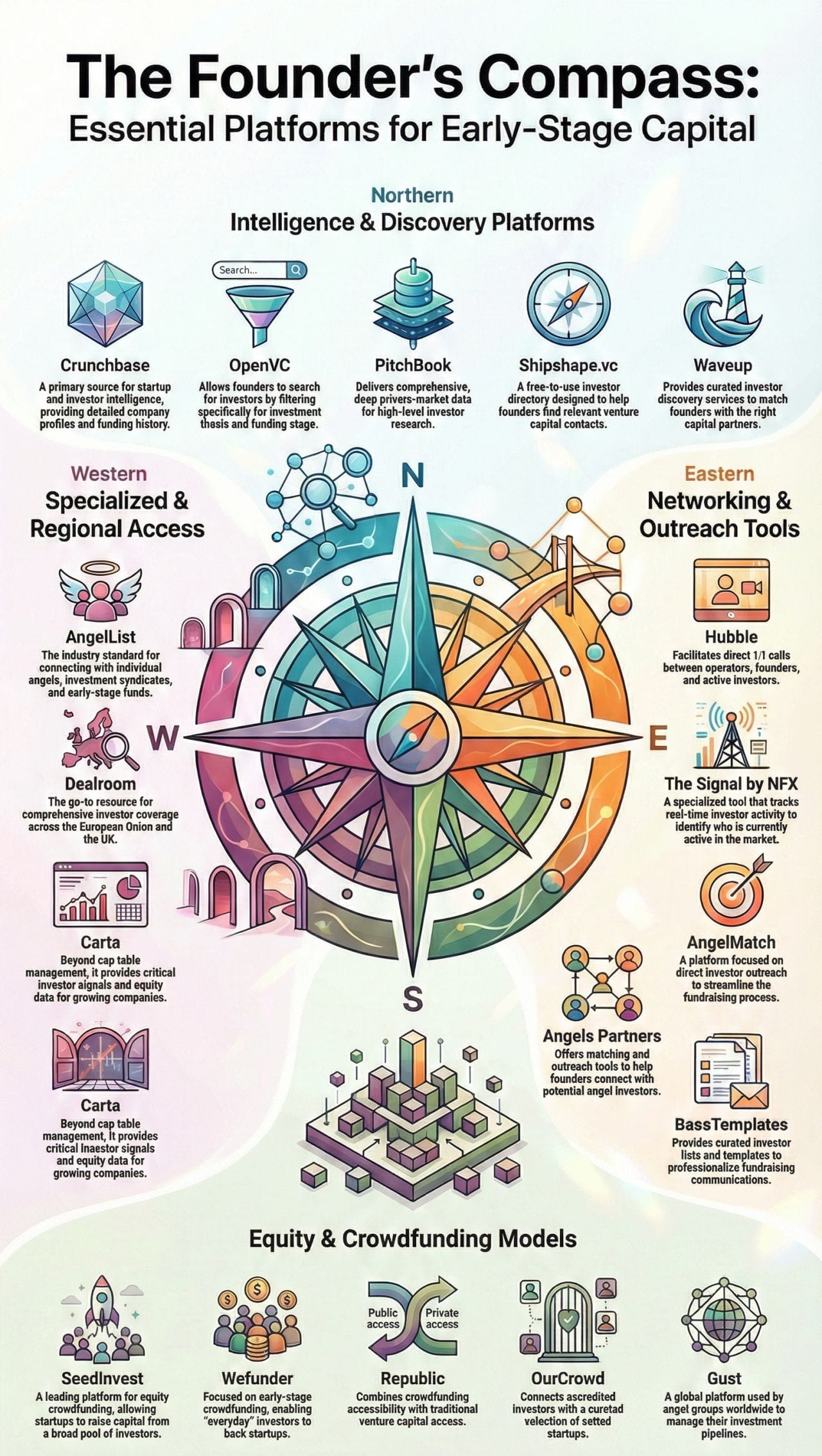 Founders increasingly rely on platforms such as Hubble for direct conversations with operators and investors, OpenVC to filter investors by thesis and stage, AngelList for angel networks and syndicates, Crunchbase for investor intelligence, and The Signal by NFX to track real investor activity.