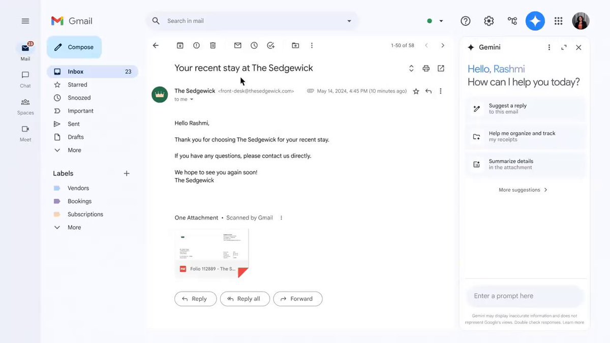 | 11. Gemini Integration for Workspace | Gemini for Workspace simplifies app integration, ensuring seamless tasks such as organizing receipts across Gmail, Drive, and Sheets. |  | Foundevo @FoundevoX |  |