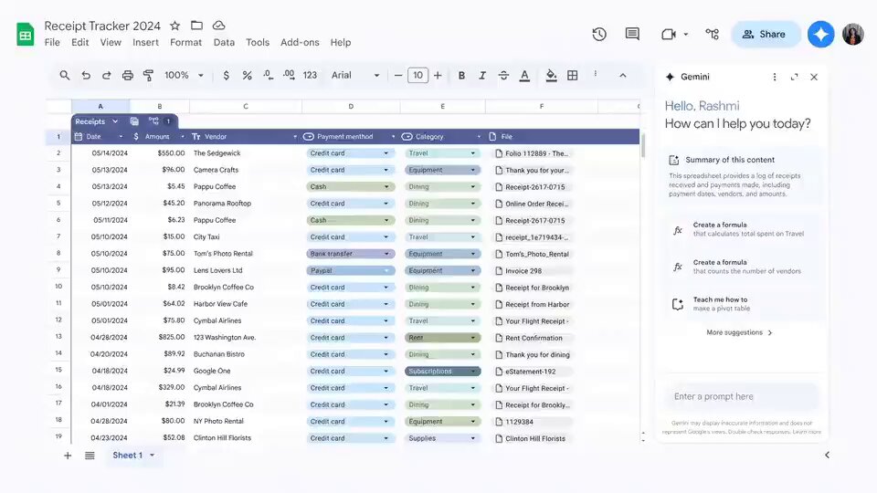 | 12. Gemini Integration in Sheets | You have the ability to examine your expenses using Data Q&A. |  | Foundevo @FoundevoX |  |