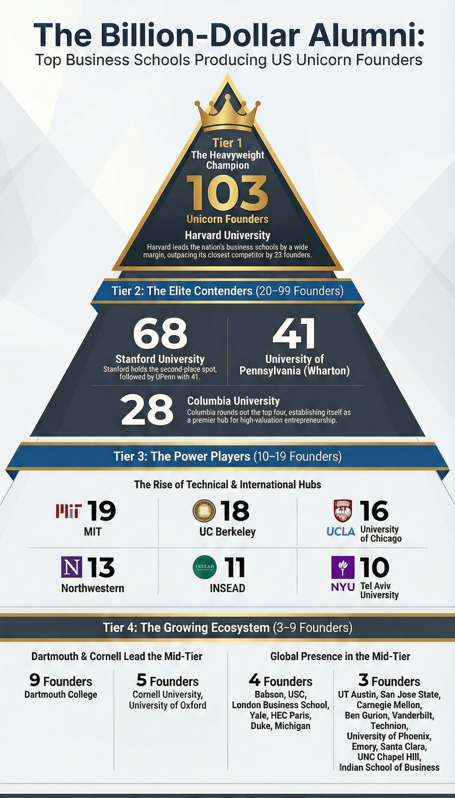 But the numbers reveal something else: certain business schools have built ecosystems that consistently produce billion-dollar company builders.