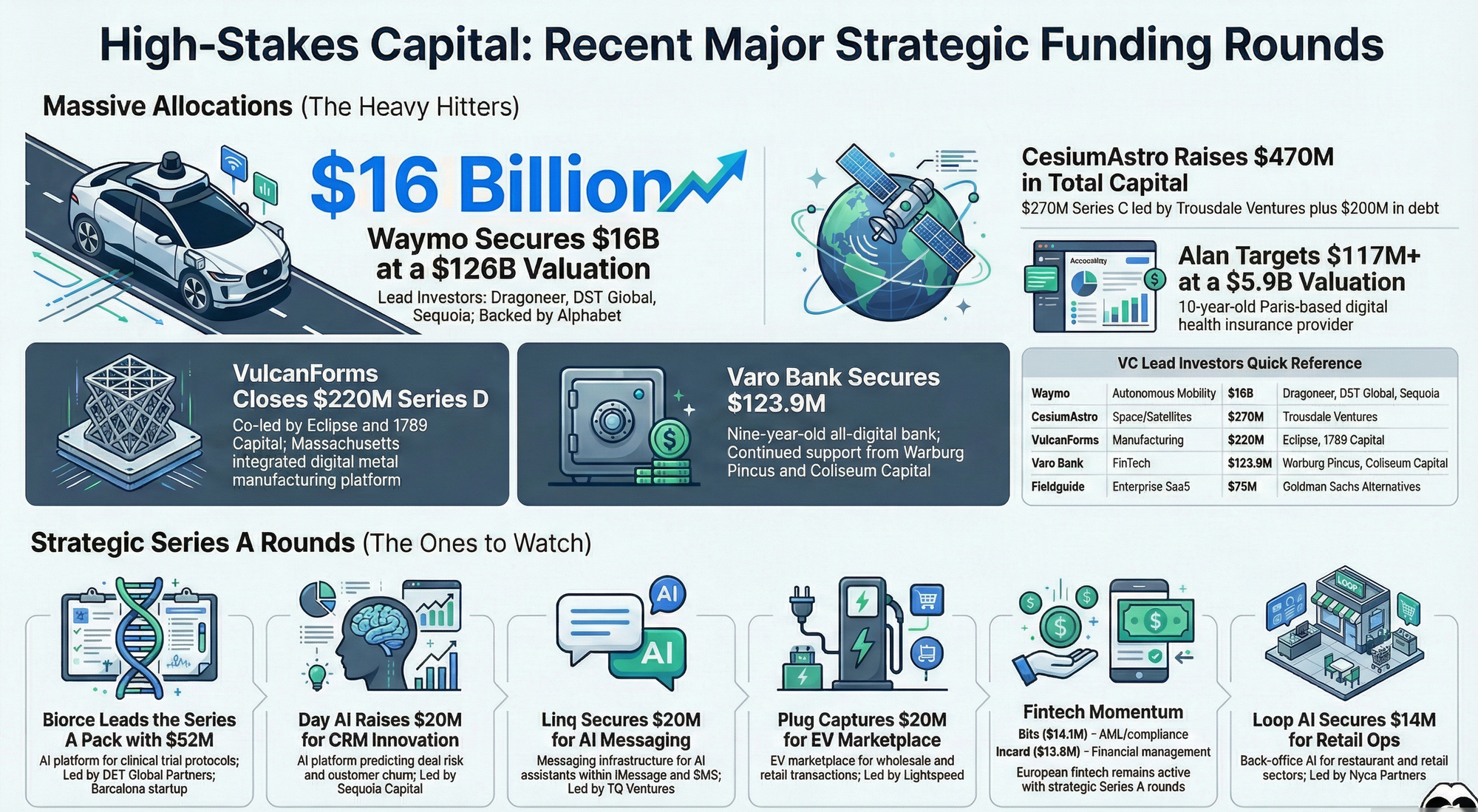 - Waymo raised a staggering $16B at a $126B post-money valuation—a clear long-term bet on autonomous mobility at scale.